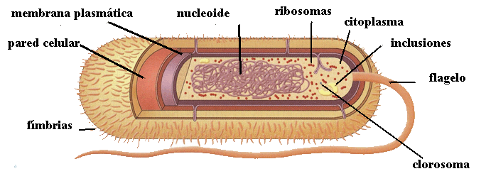 Algunos de estos orgánulos son los ribosomas (sirven para fabricar proteínas), los clorosomas (agregados de pigmentos fotosintéticos), el nucleoide (contiene el material hereditario) y las inclusiones (depósitos de sustancias de reserva).